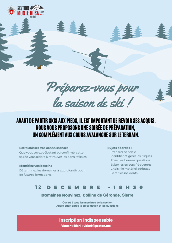 Le 12 décembre 2025, nous vous invitons à la soirée de préparation pour bien démarrer la saison de ski