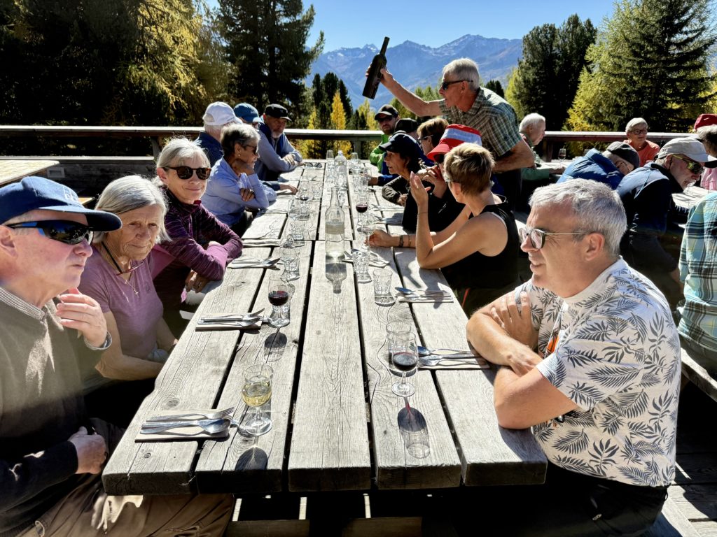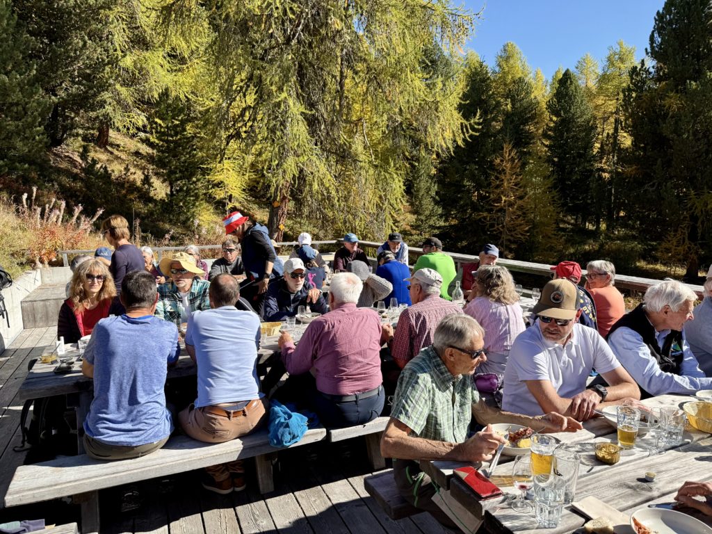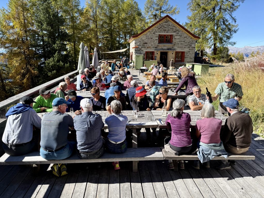 Après l’assemblée générale du 12 octobre 2025, les membres du CAS Sierre profitent d’une journée splendide sur la terrasse de la cabane de l’Illhorn (2100 m), dégustant la traditionnelle choucroute face au Cervin et à la Couronne Impériale.
