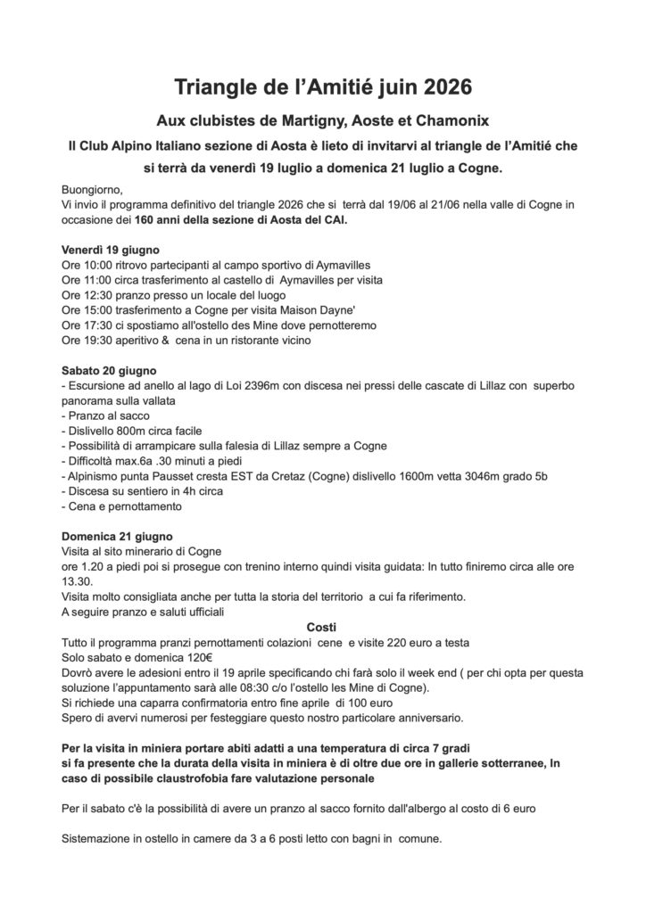 Cette année, elle est invitée par le CAI, section d’Aoste, à Cogne. L’invitation est également ouverte à nos membres.