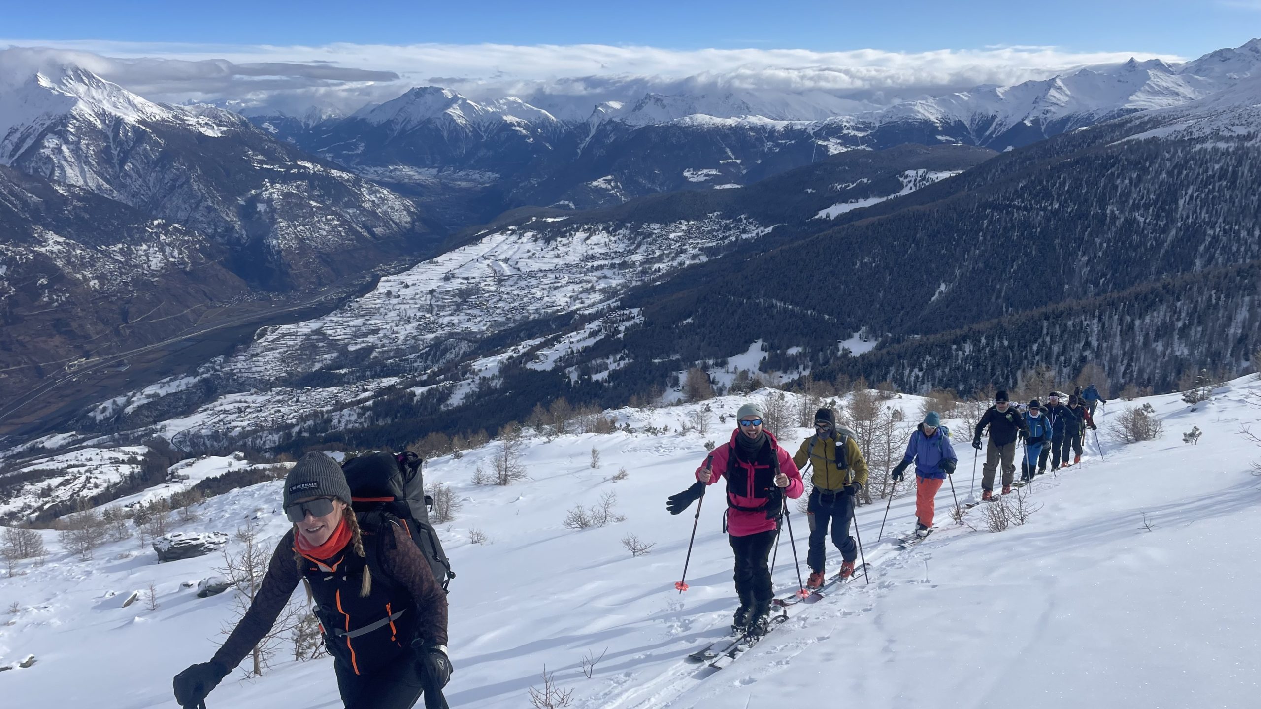 Tout commence par la découverte de Eischoll, station aussi reculée que charmante, perchée au-dessus de la vallée du Rhône. Un de ces endroits où l’on se demande si le GPS ne nous testerait pas un peu. Deux installations du domaine nous permettent de prendre rapidement de la hauteur — luxe assumé et parfaitement accepté par les dix participants.