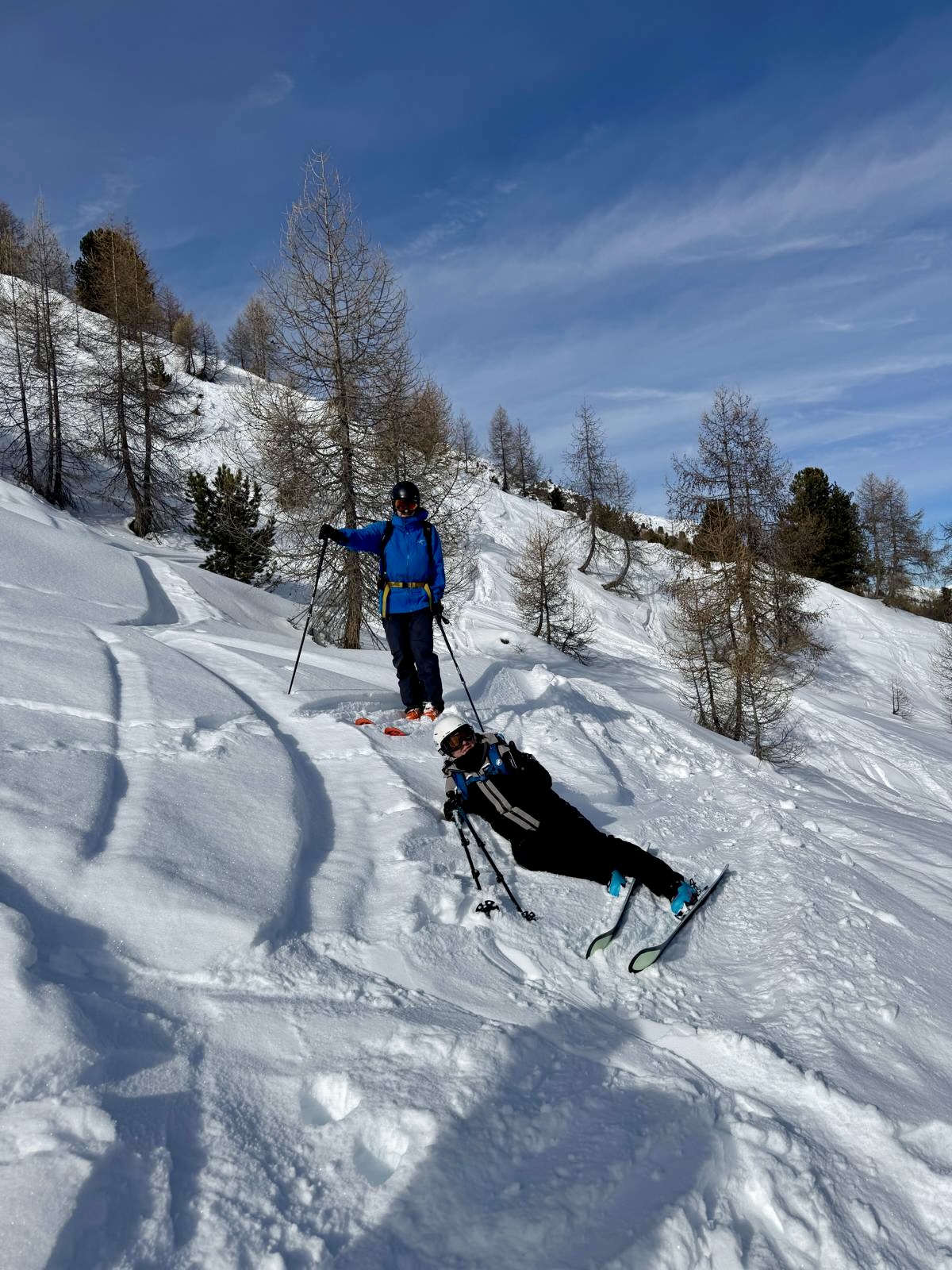 La matinée commence tôt pour notre petit groupe au départ de Sierre : covoiturage, discussions déjà animées et un premier briefing sur ce qui nous attend. À Grimentz, nous retrouvons le reste de l’équipe, tout aussi motivée et prête à découvrir (ou redécouvrir) les joies du free-ride en bonne compagnie.