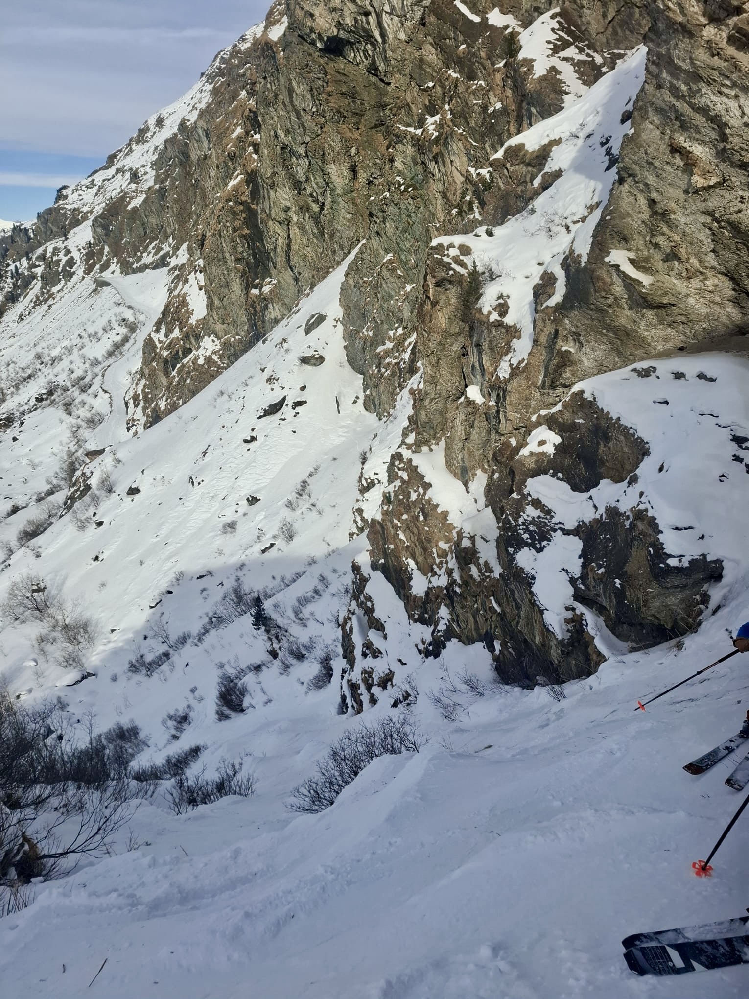 Côté neige, bonne surprise : bien meilleure que l’année dernière, et même saupoudrée de poudre fraîche grâce aux petites chutes des jours précédents. Quelques zones encore vierges n’attendaient que nous.