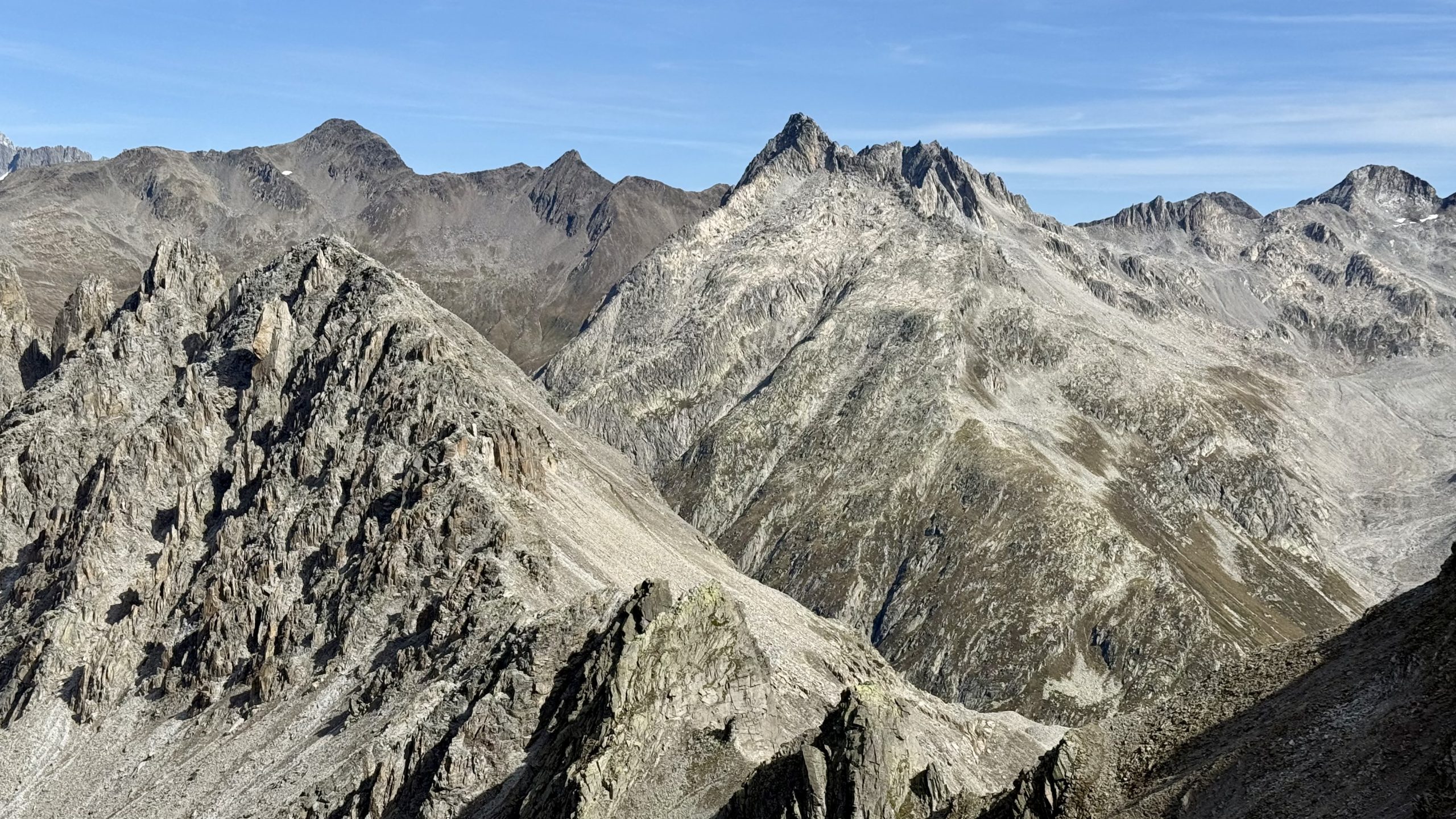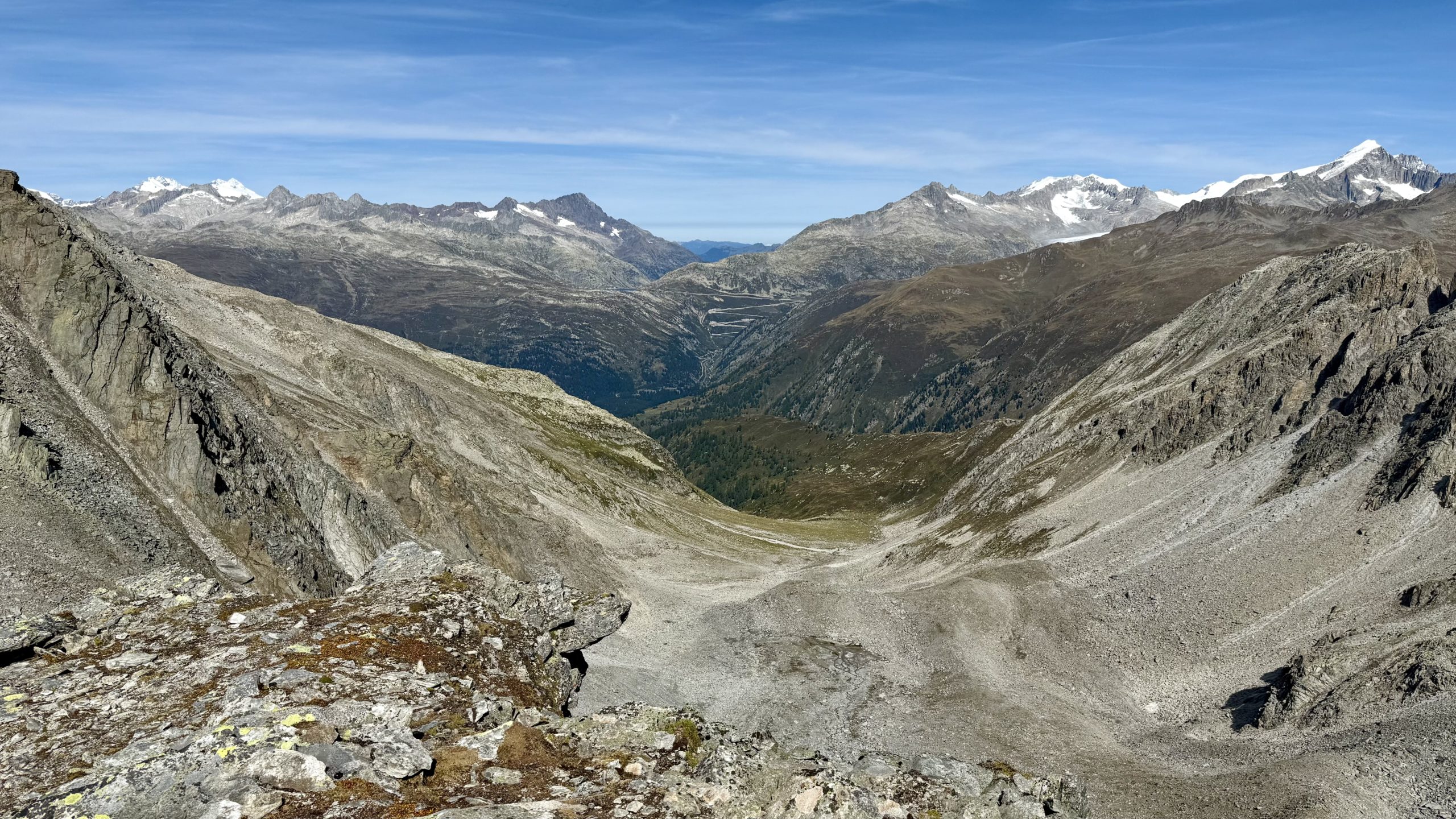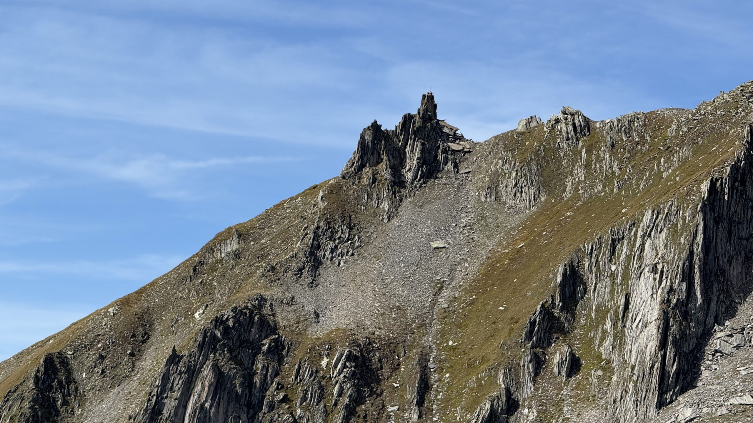 Sous un ciel limpide, un monde de cimes s’est ouvert devant moi : le glacier du Basodino, celui du Blinnenhorn, les lointains du Grimsel et la pureté de l’Oberaarhorn. Et face à nous, imposante, la crête élancée qui mène au Pizzo Gallina, fière et souveraine.