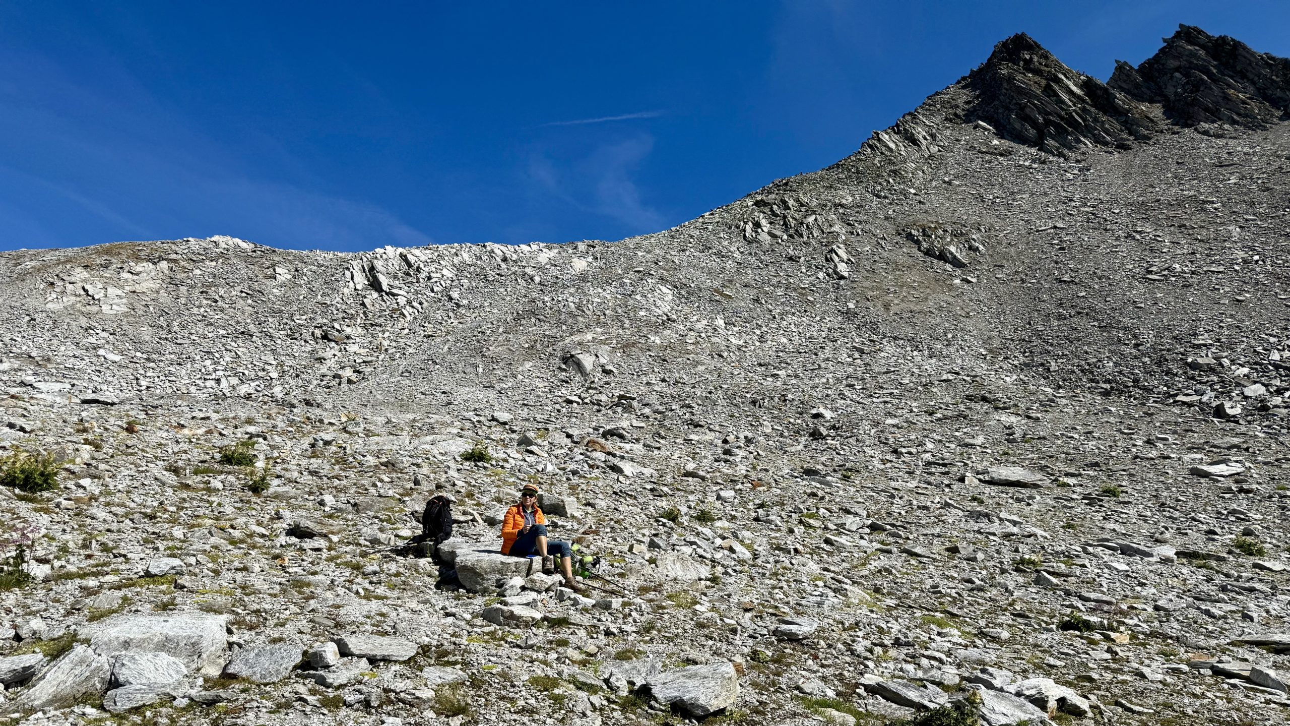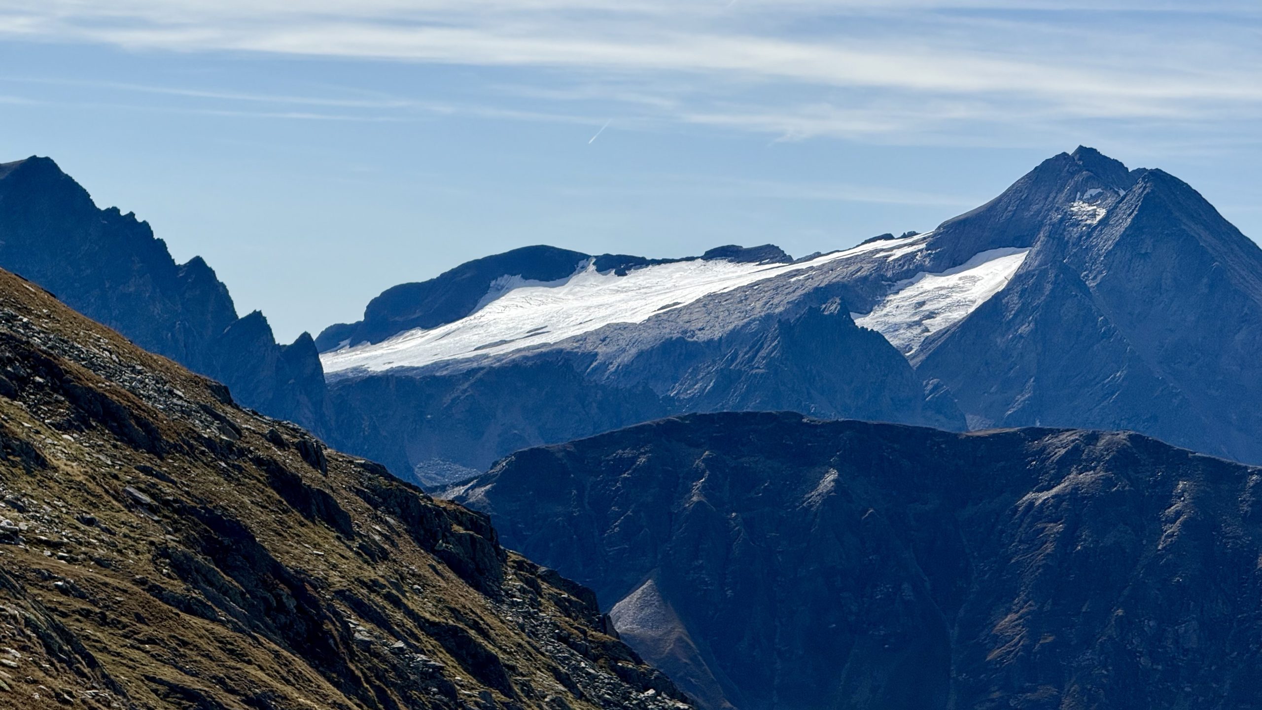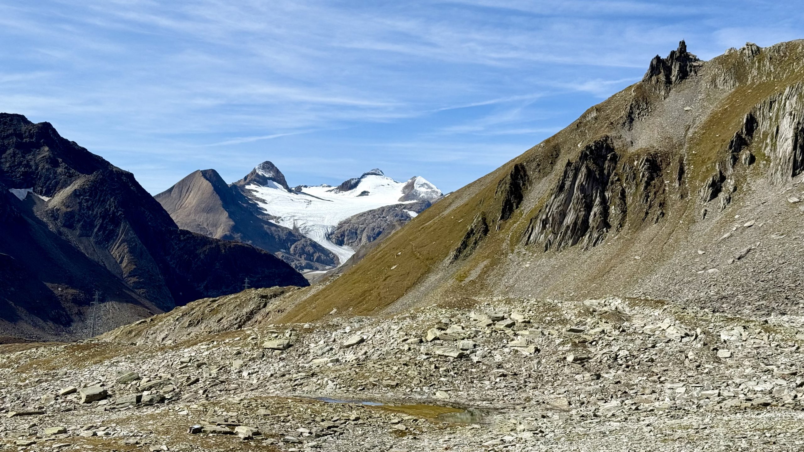 Sous un ciel limpide, un monde de cimes s’est ouvert devant moi : le glacier du Basodino, celui du Blinnenhorn, les lointains du Grimsel et la pureté de l’Oberaarhorn. Et face à nous, imposante, la crête élancée qui mène au Pizzo Gallina, fière et souveraine.